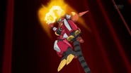 The LBX ignites its fist with fire and proceeds to a deliver a barrage of attacks on the opponent, finishing with a double slam of the knuckle weapons.